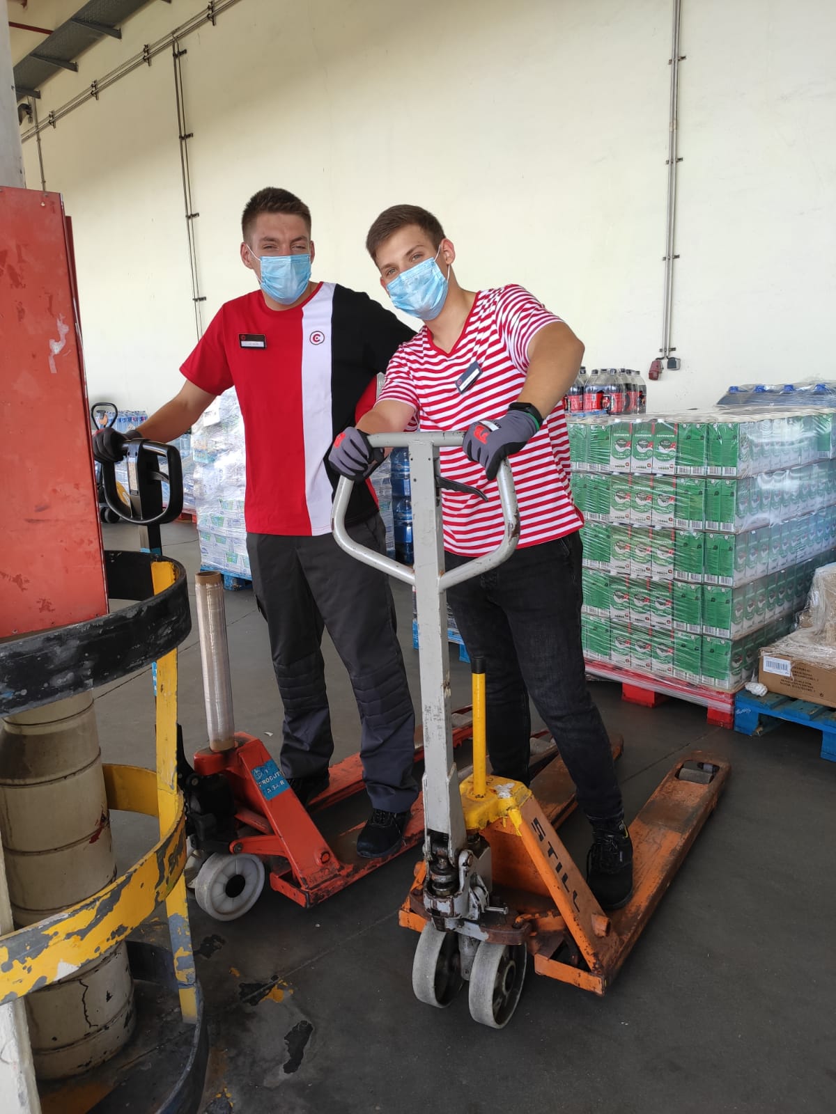 Uczniowie na praktykach zawodowych w magazynie sklepu.