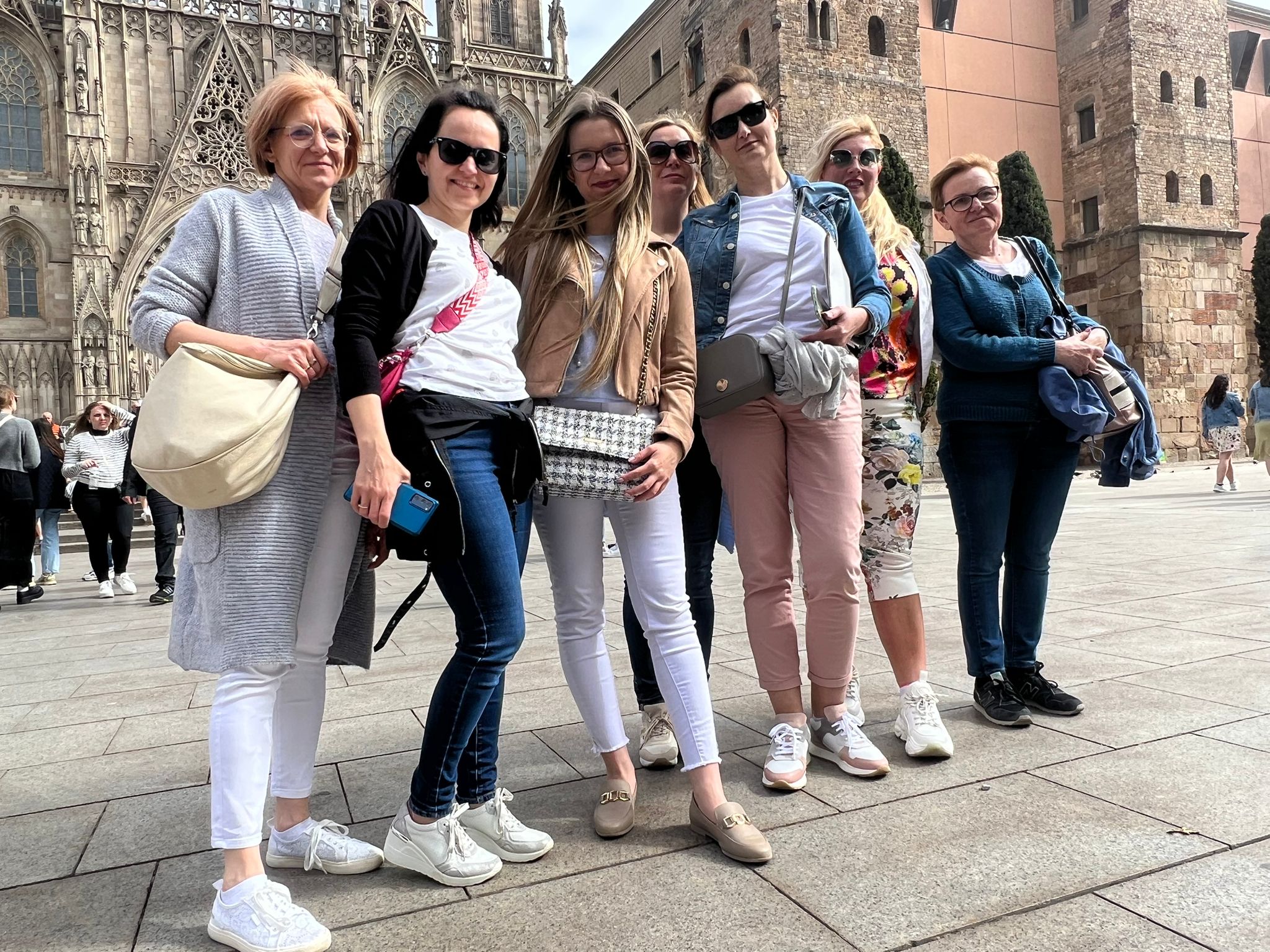 Nauczycielki stojące przed budynkiem kaplicy.